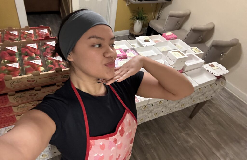 Canonge is responsible for managing Strawberry Delights’ social media as well as customer pickup and drop-off to make sure the experience matches the quality of the desserts.